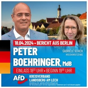 Veranstaltungsort wird bei Anmeldung bekannt gegeben. Bitte unter gabriele.schick@afdbayern.de anmelden
